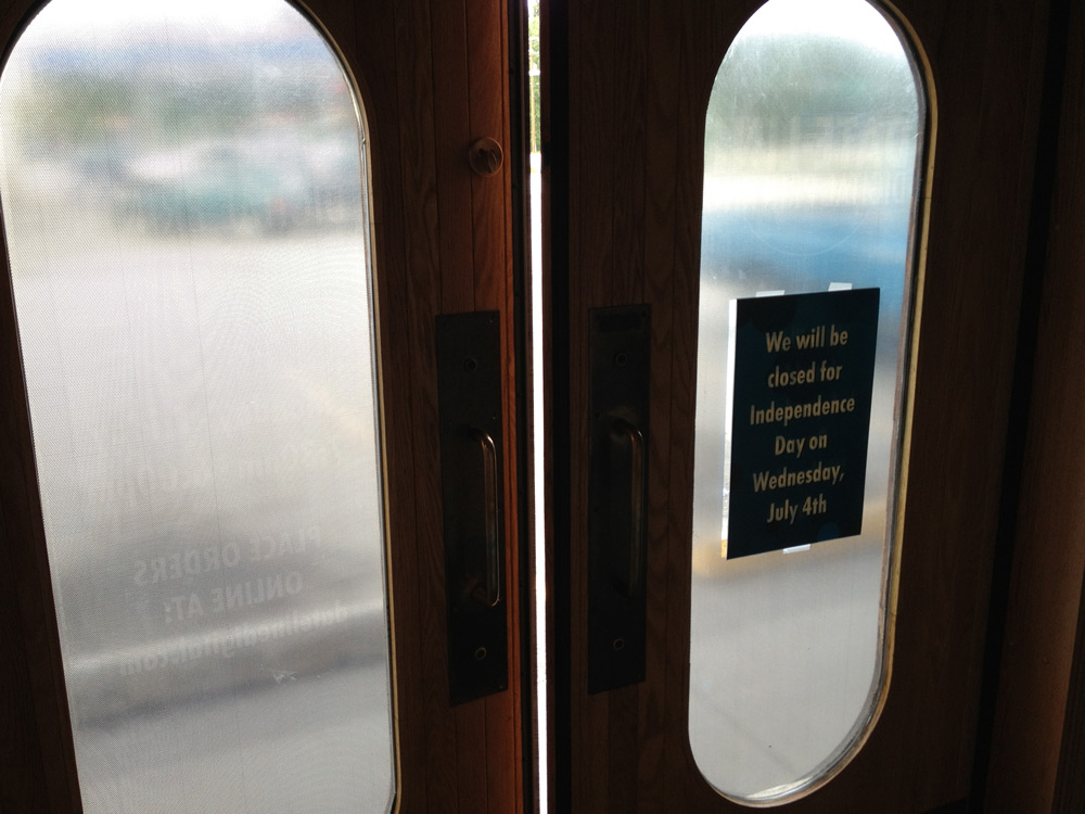 You might also notice we included a cutout in our left door so that we could post special hours or other messages from the inside.