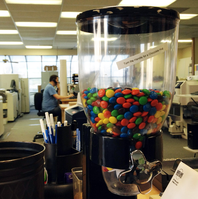 It was on one of these trips that I had the idea to put an M&M dispenser in our lobby and start a partnership with College Coffeehouse to offer our customers a discount on coffee.